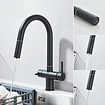 Met de 3-in-1 waterfilter mengkraan haal je meer uit je keuken. Deze kraan geeft je de mogelijkheid om direct gefilterd of gekoeld water te tappen, dankzij de handige aansluiting voor een drinkwaterfilter of waterkoeler. Het filter zorgt ervoor dat je altijd schoon en heerlijk water bij de hand hebt. Let op: het drinkwaterfilter en de waterkoeler zijn niet inbegrepen bij de kraan, maar kunnen eenvoudig worden aangesloten voor direct gebruik. Deze oplossing is ideaal voor iedereen die snel en eenvoudig toegang wil hebben tot gefilterd water, zonder extra apparaten in de keuken.