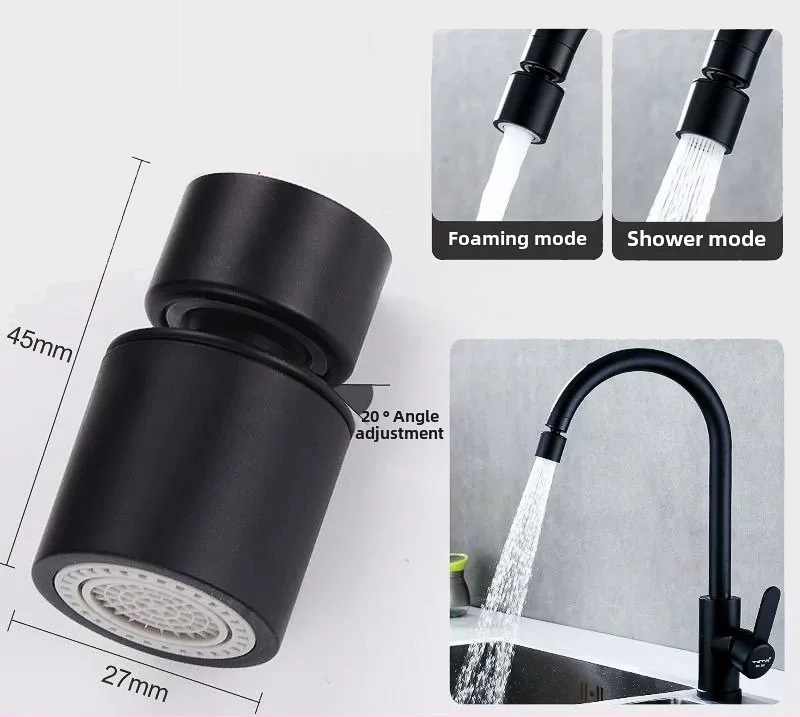 360 ° Roterende sproeikop wastafelkraan adapter 2-standen verstelbare zwart