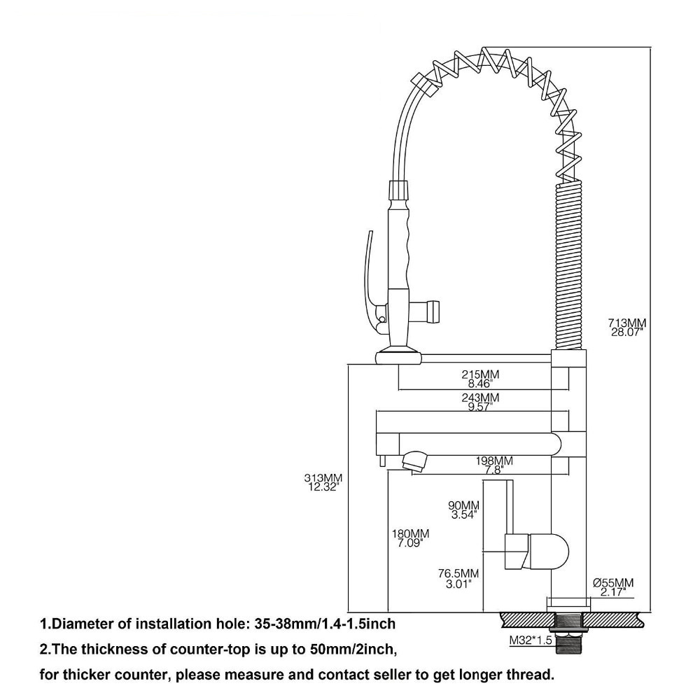 Een van de grootste voordelen van deze spoelkraan is de dubbele uitloop, die je de flexibiliteit biedt om gemakkelijk tussen verschillende waterstromen te wisselen. Of je nu de reguliere waterstroom wilt gebruiken voor het vullen van pannen of de krachtige pull-down spuitkop voor het schoonmaken van groenten of afspoelen van servies, deze kraan maakt het allemaal mogelijk. De 360 graden draaibare uitloop zorgt voor extra bereik en gebruiksgemak, wat bijzonder handig is in grotere spoelbakken of wanneer je meerdere taken tegelijkertijd uitvoert. De kraan is ontworpen voor installatie met een enkele 33mm gat, wat zorgt voor een strakke en eenvoudige montage zonder onnodige gaten in je werkblad.