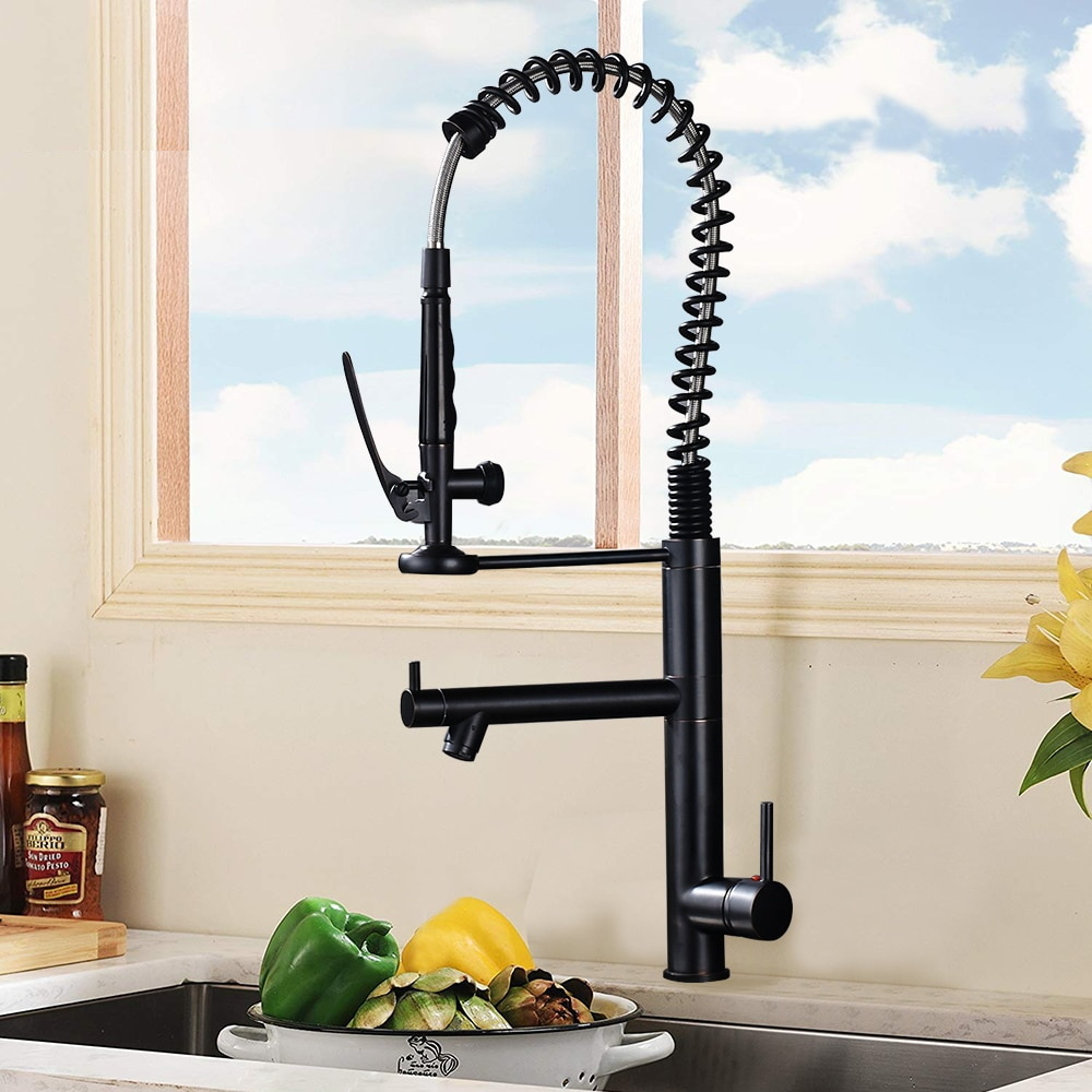 Breng het professionele gemak van een horeca-keuken naar je eigen huis met de extra hoge horeca spoelkraan met dubbele uitloop. Deze kraan, ontworpen voor intensief gebruik, is perfect voor wie graag kookt en behoefte heeft aan een efficiënte en robuuste spoeloplossing. Verkrijgbaar in de kleuren chroom, zwart, en geborsteld nikkel, past deze kraan moeiteloos in verschillende keukendecors. Het robuuste messing materiaal zorgt voor een duurzame kraan die bestand is tegen dagelijks gebruik, terwijl het keramische klepsysteem garant staat voor soepele en betrouwbare prestaties, zonder het risico van lekken. Met een enkele handgreep bedien je eenvoudig de temperatuur en waterstroom, wat bijdraagt aan de gebruiksvriendelijkheid van dit model.