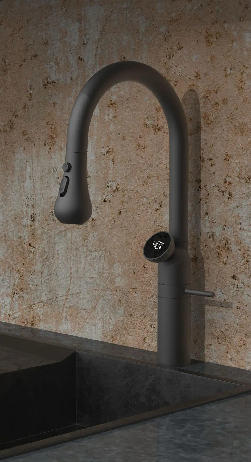 Luxe design keukenkraan met LED temperatuur display mat zwart