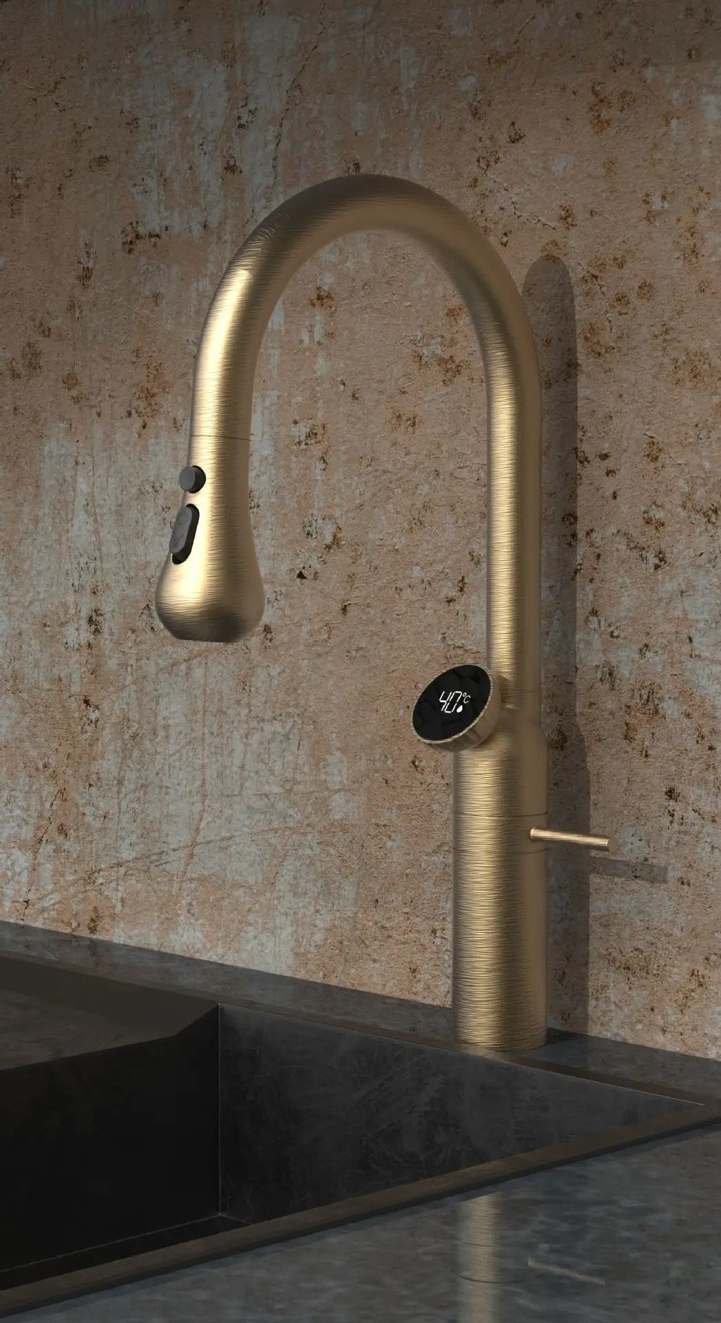 Luxe design keukenkraan met LED temperatuur display geborsteld goud
