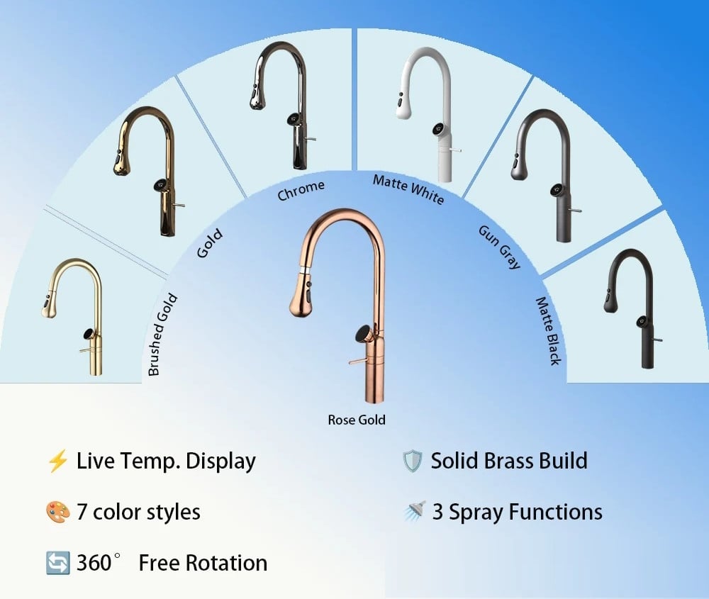 • Shop nu deze Luxe design keukenkraan met LED temperatuur display goud gepolijst op Valisa.nl
