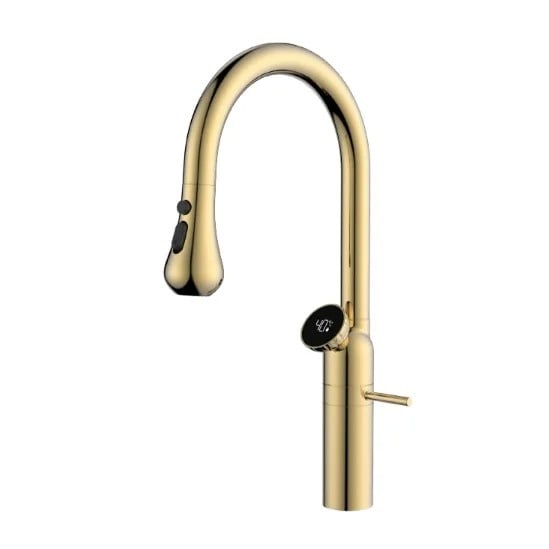 Luxe design keukenkraan met LED temperatuur display goud gepolijst