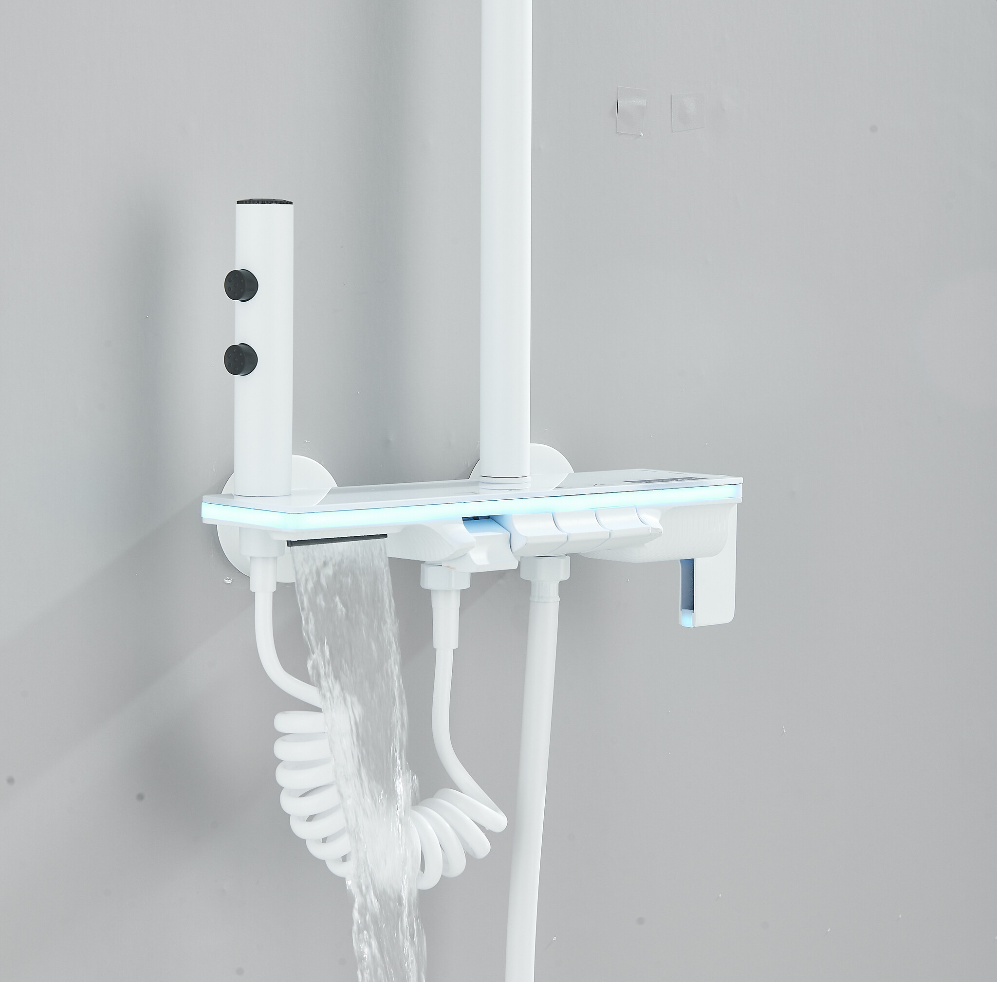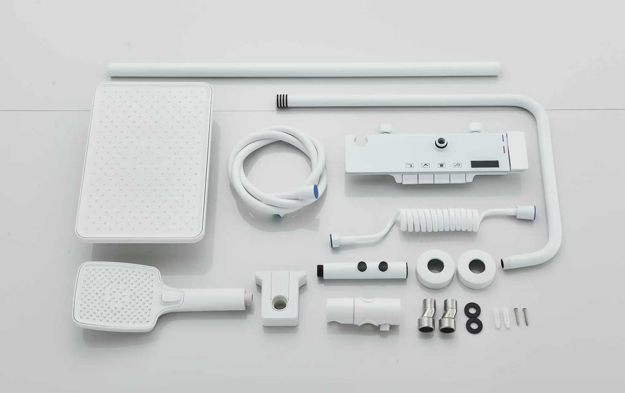- Handdouche: ergonomisch design (115 × 255 mm) met verstelbare houder—handig voor gericht spoelen of het schoonmaken van de douche.