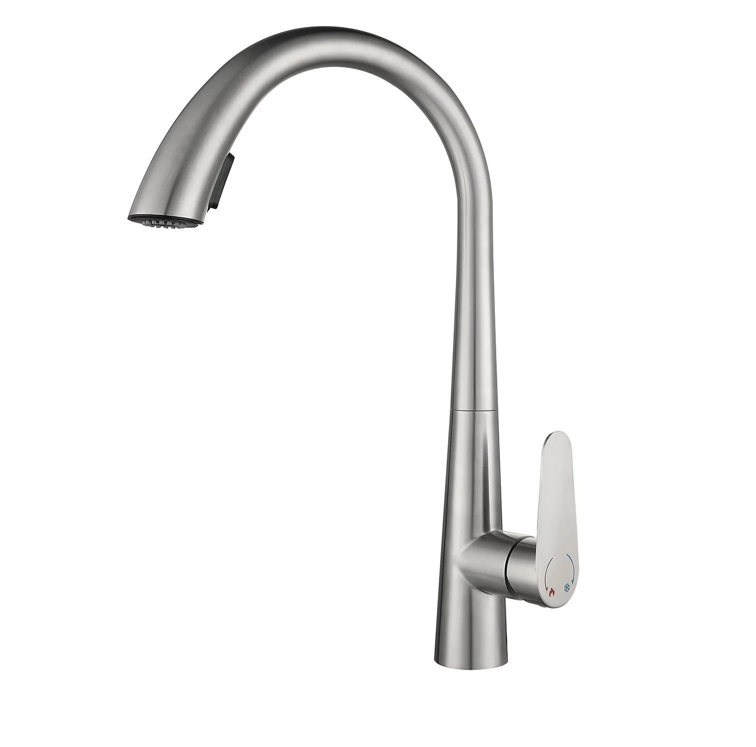 Modern hoog gebogen pull down keuken mengkraan met 2 functies geborsteld nikkel
