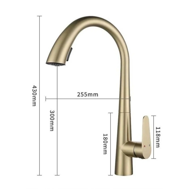 Geborsteld goud Bekijk hier onze : VALISA Modern hoog gebogen pull down keuken mengkraan met 2 functies geborsteld goud 179,95