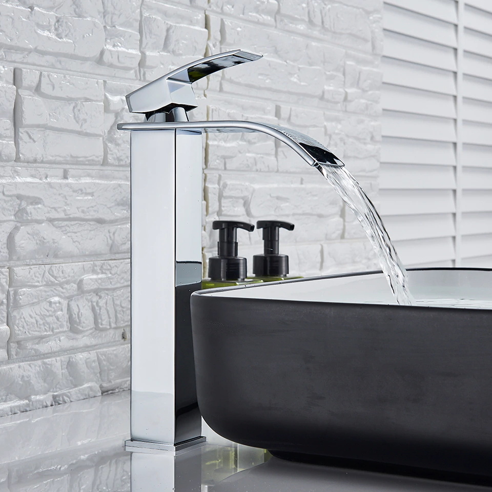 De verhoogde design wastafelmengkraan met watervaluitloop is een prachtige toevoeging aan iedere badkamer. Met zijn strakke lijnen en hoge ontwerp, past deze kraan perfect bij zowel moderne als klassieke wastafels en waskommen. Het stijlvolle uiterlijk maakt het een ware blikvanger in uw badkamer, waarbij de kraan moeiteloos opgaat in het interieur. Dankzij de verhoogde hoogte is deze kraan bijzonder geschikt voor waskommen, waardoor u extra flexibiliteit krijgt in uw badkamerontwerp.
